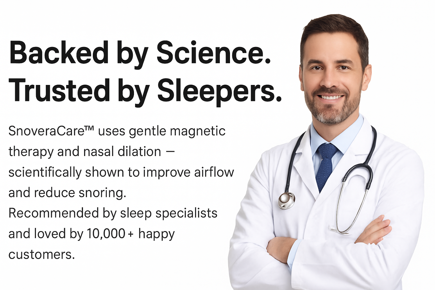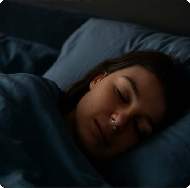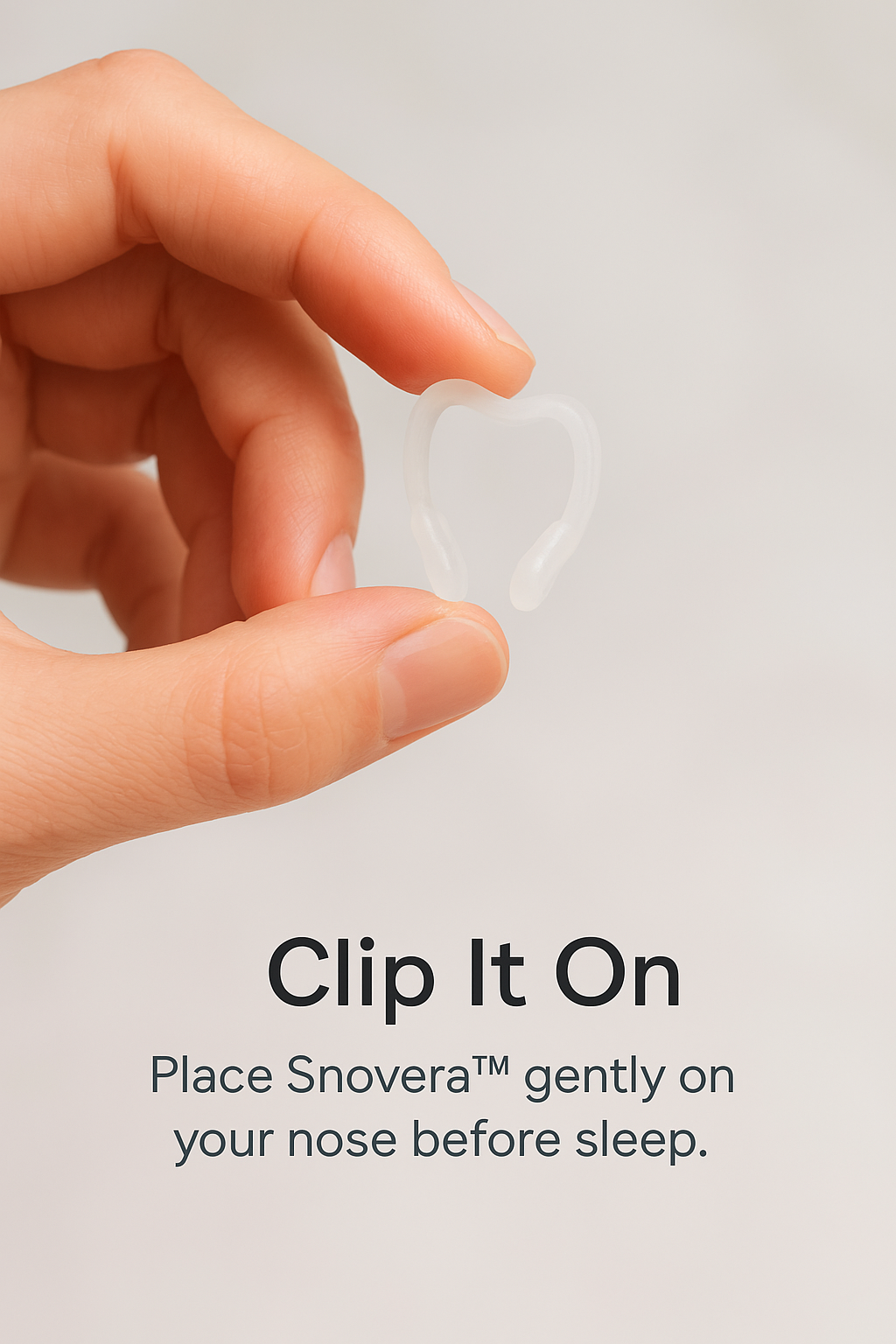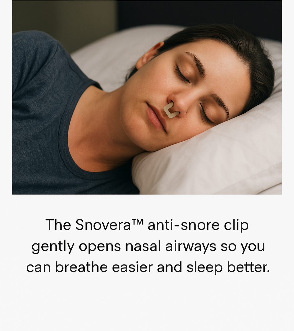 Snoring is often caused by narrowed or collapsed nasal passages. SnoveraCare™ opens them up gently and instantly — giving you deeper, quieter sleep without expensive machines or uncomfortable strips.